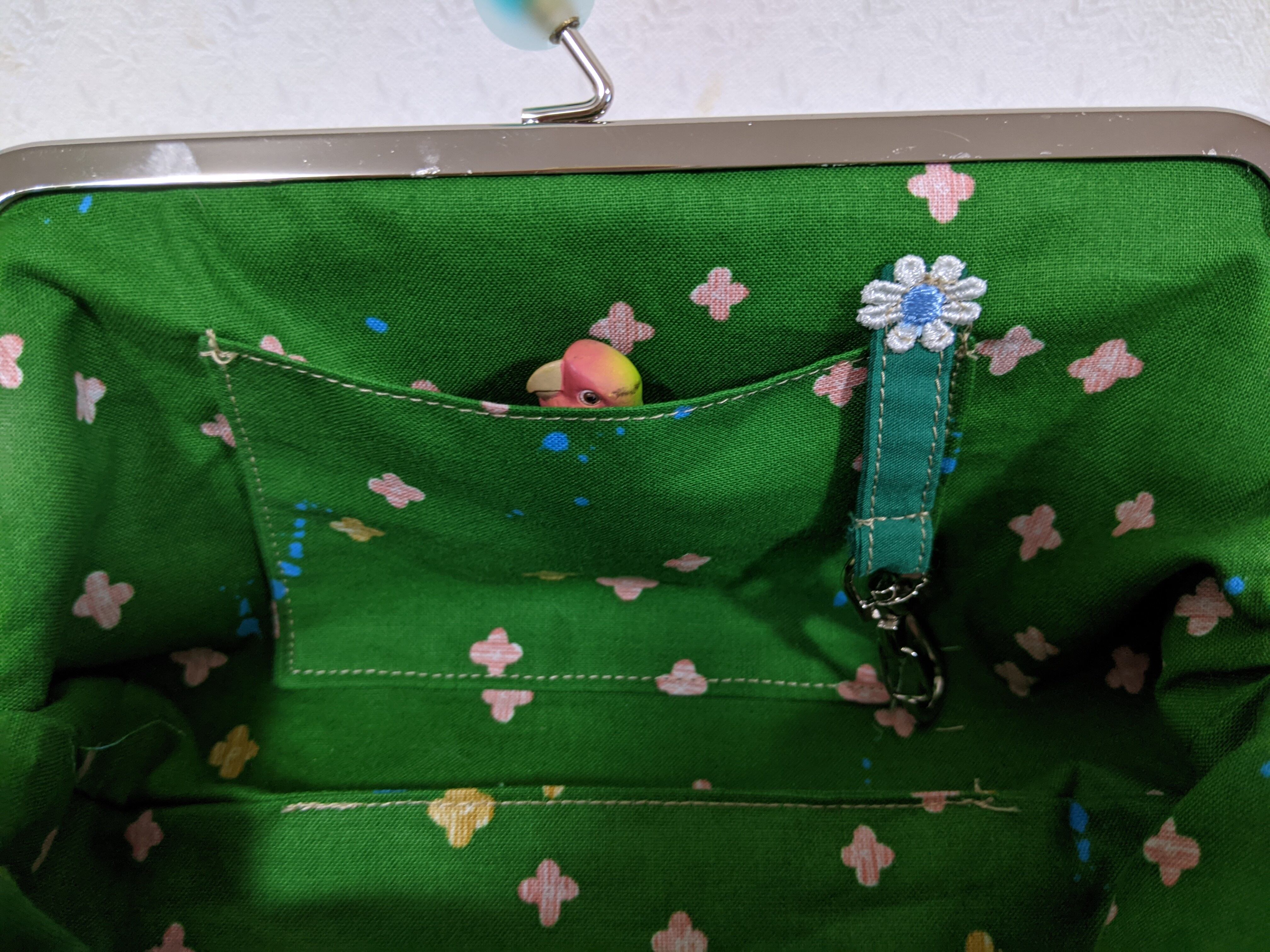 ★ご使用の際に、あまり重いものを入れますと口金が外れるおそれがあります。補強などをしておりますが、ハンドメイドということを御理解の上ご購入下さいませ。
