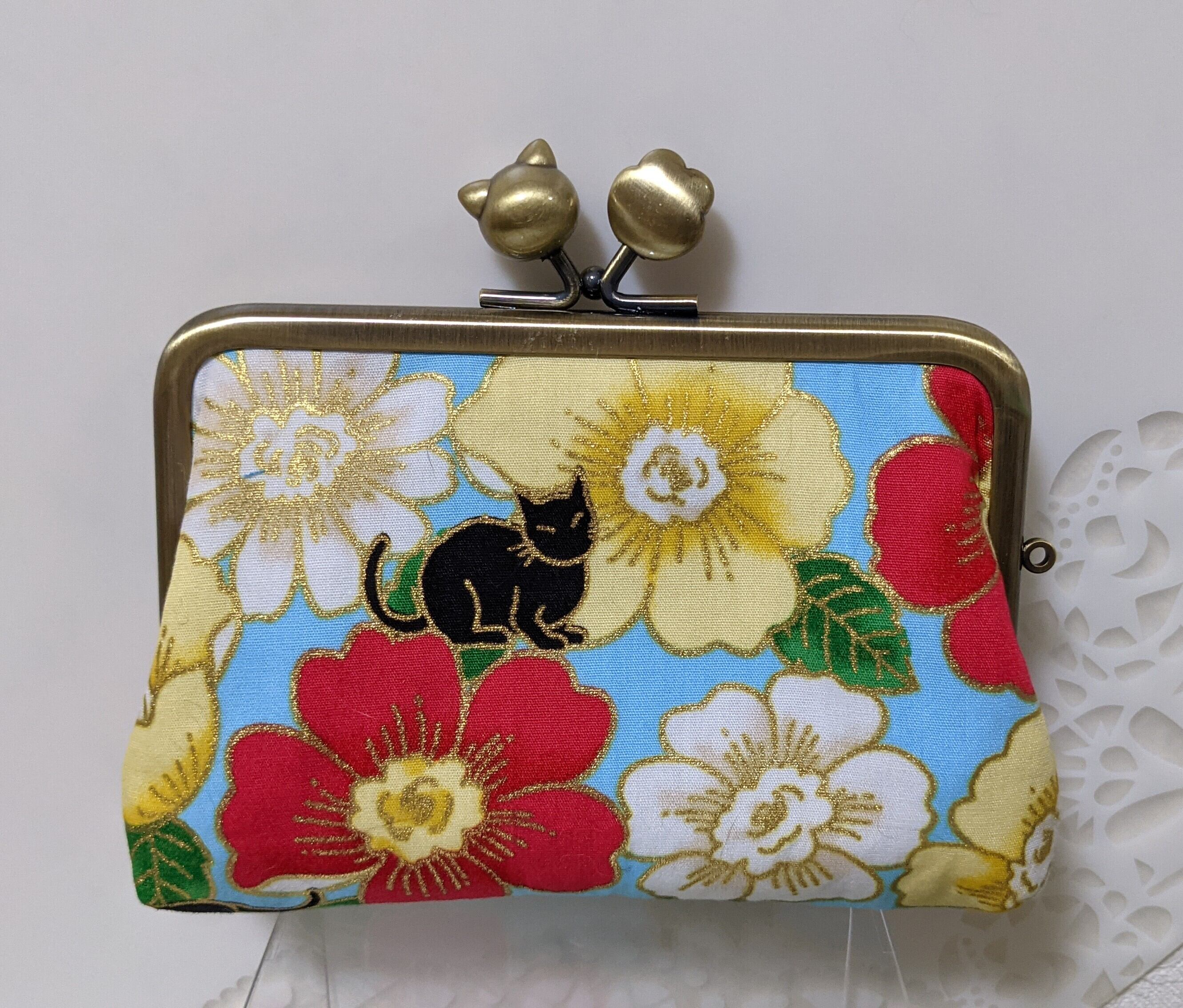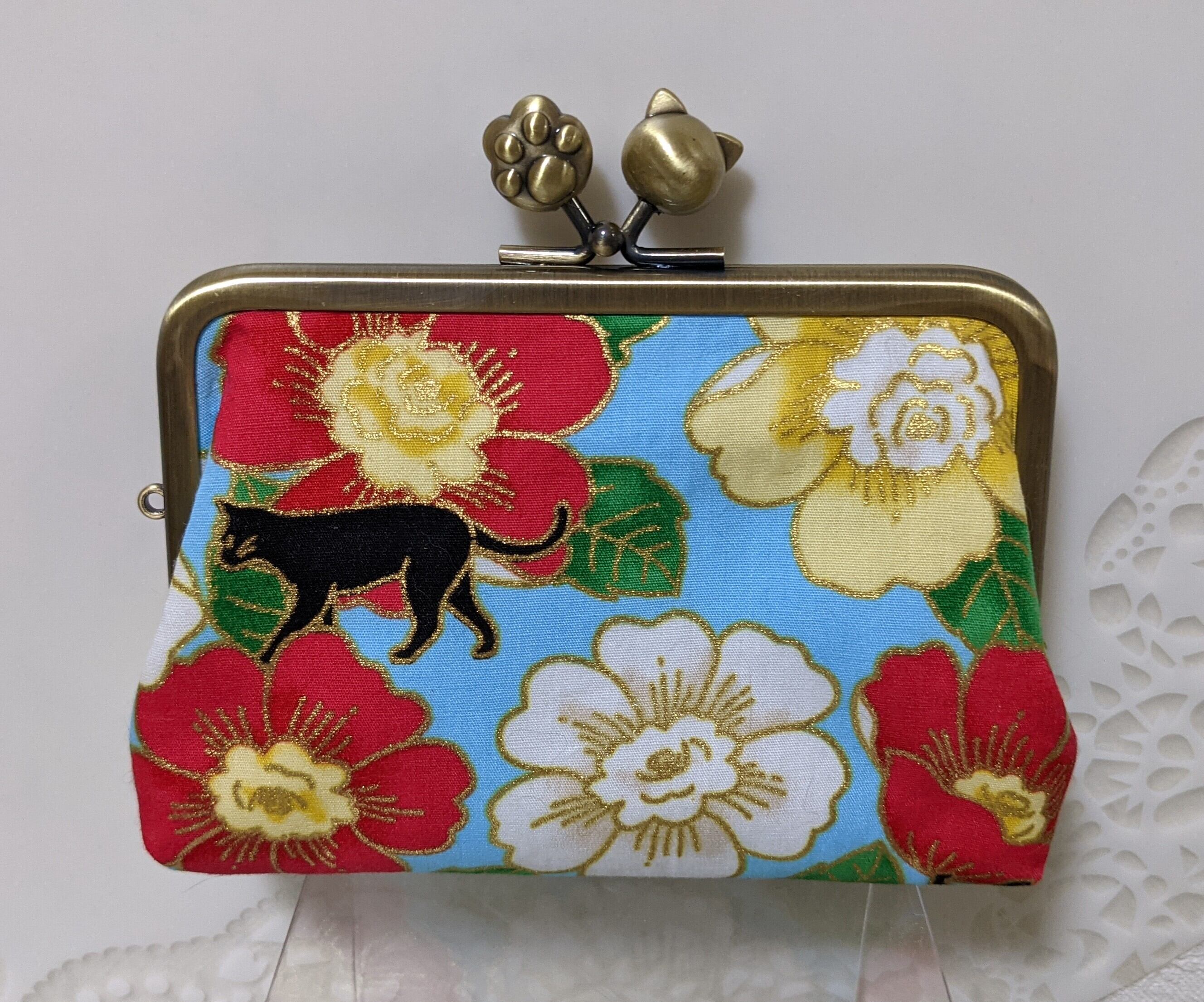 椿と猫の親子がま口さん