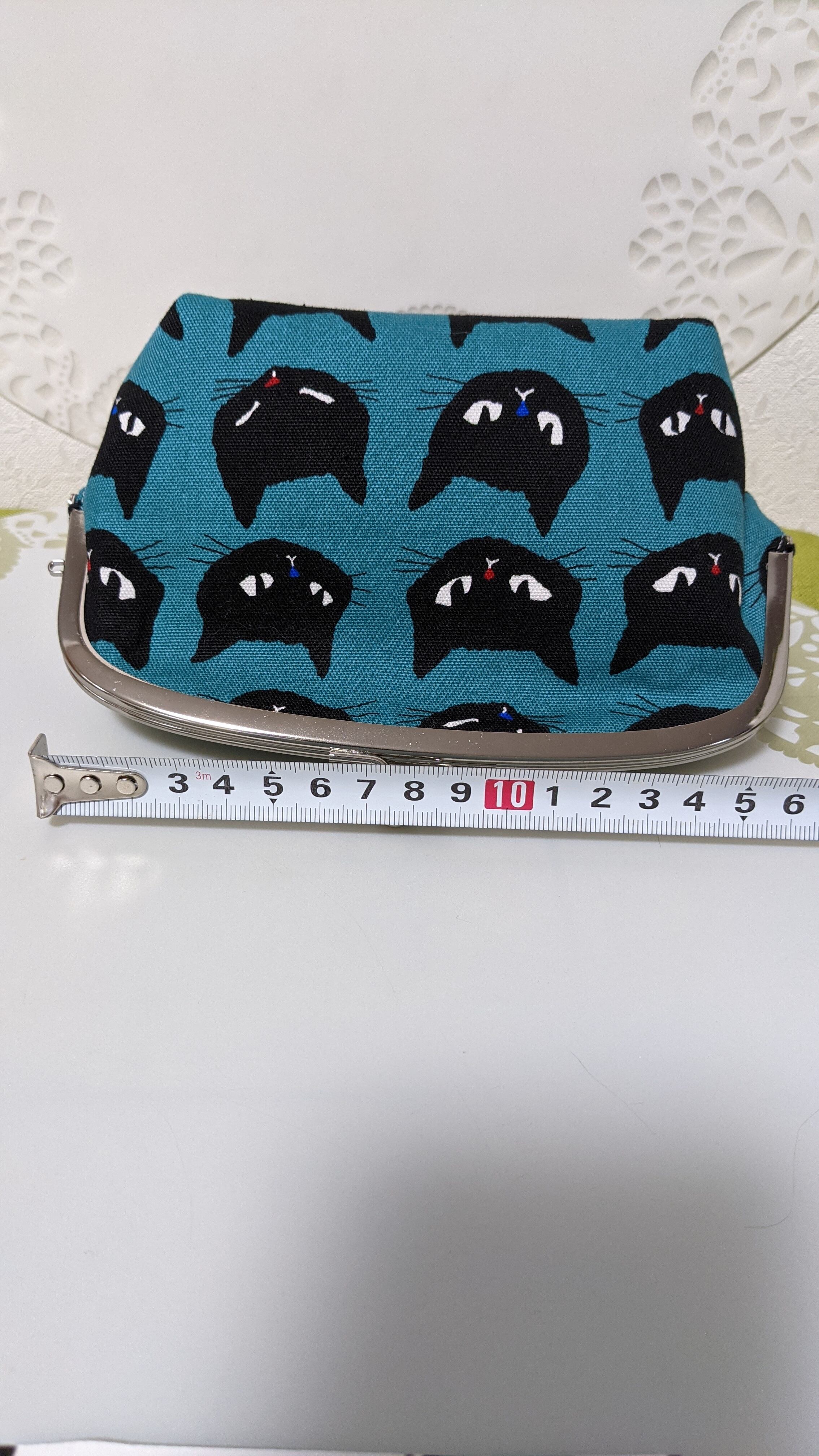 ★大好きな猫と、大好きなターコイズブルーの生地でポーチを作りました( ꈍᴗꈍ)