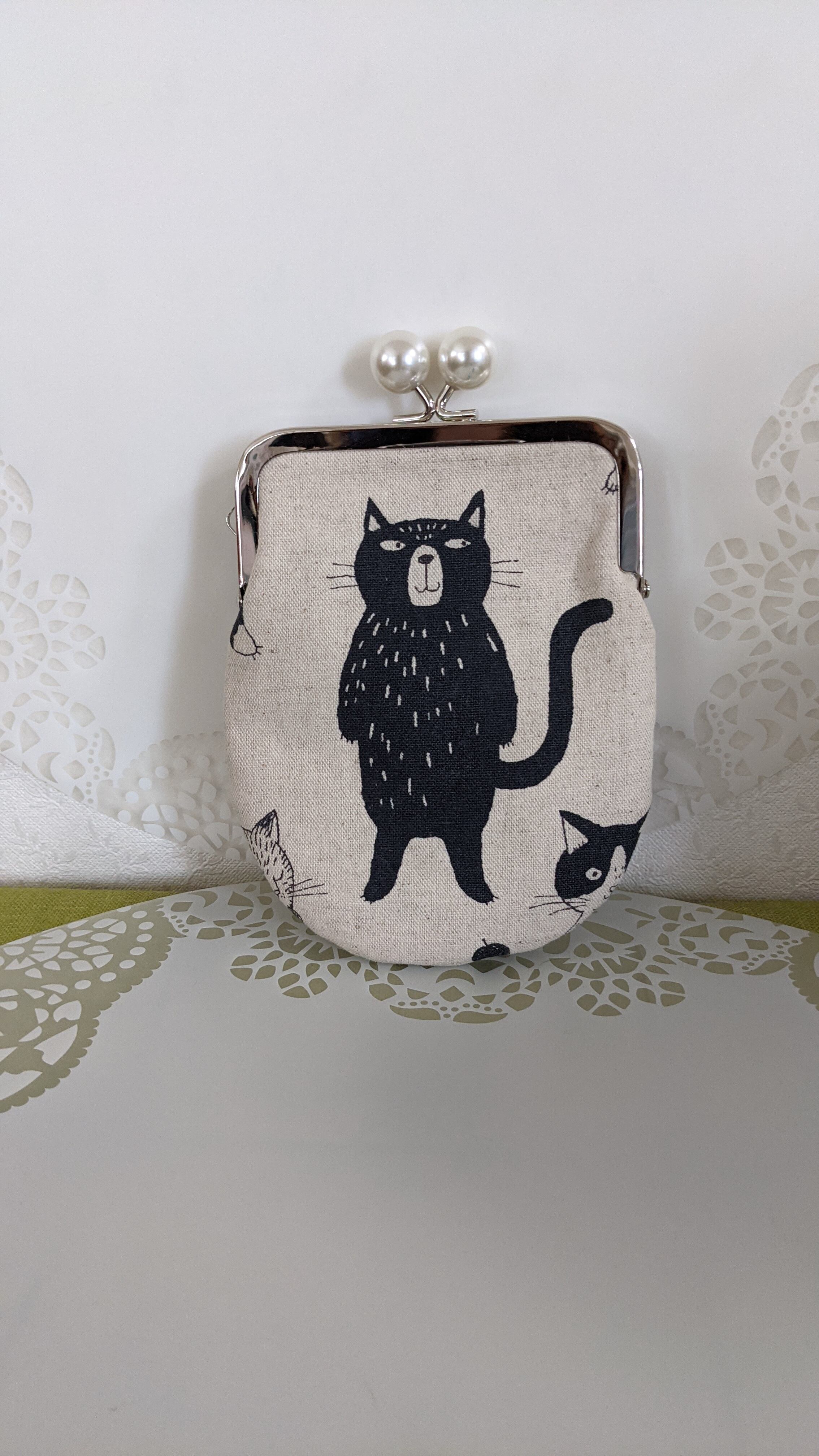 ★立ってるネコさん柄の生地でポーチ作りました。